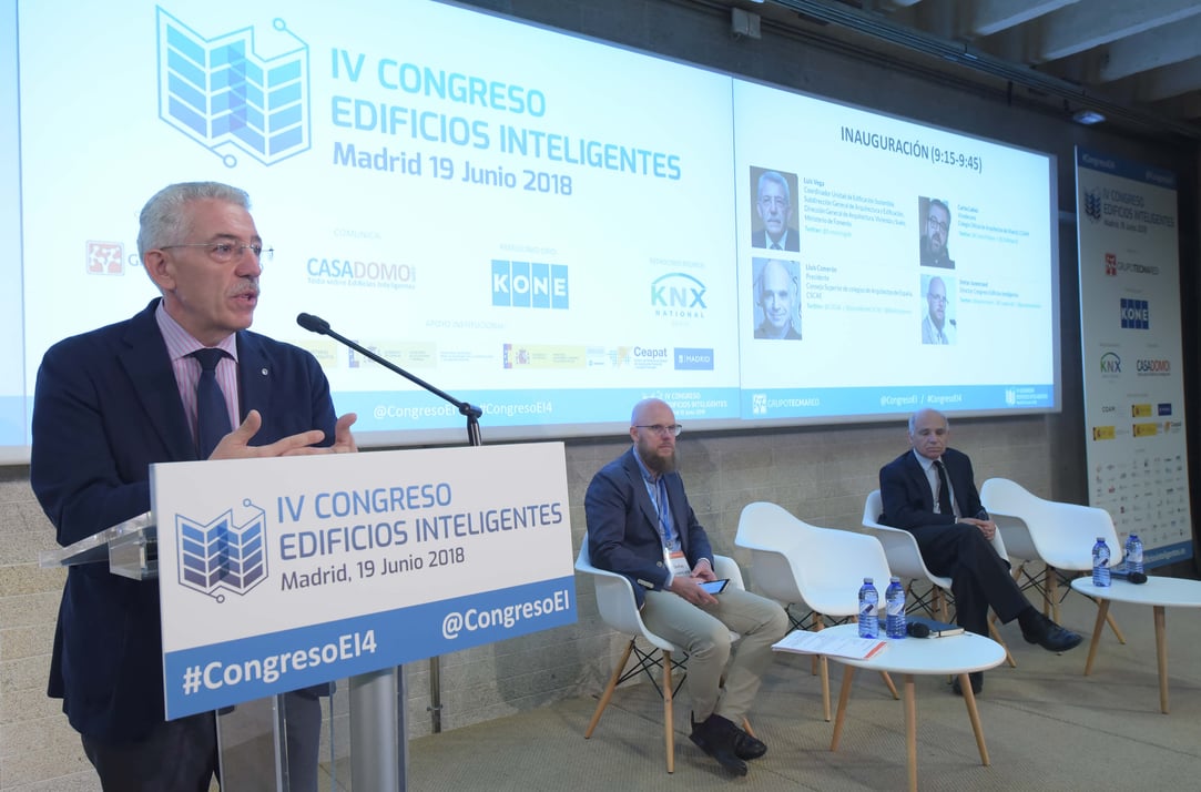su ponencia magistral sobre la norma UNE 178108 de Smart Buildings en el IV Congreso Edificios Inteligentes.